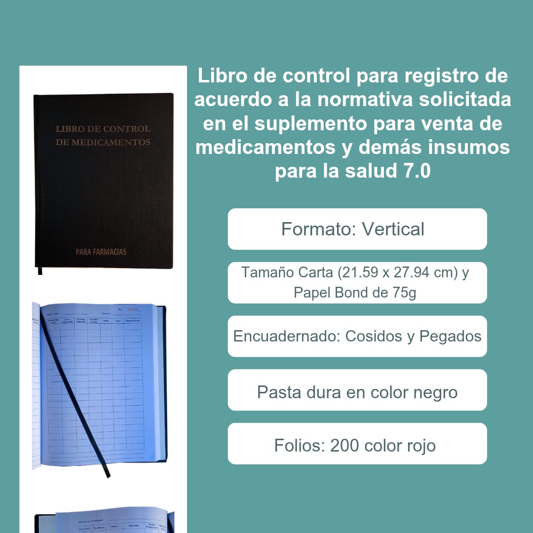 LIBRO DE CONTROL PARA FARMACIAS, BOTICAS Y DROGUERÍAS.